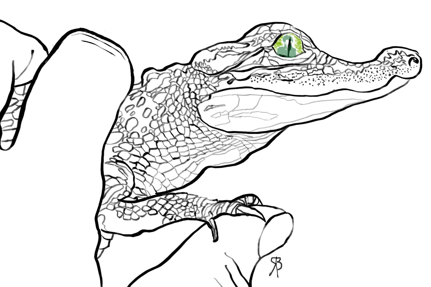 So I could already see the whole dynamic developing. This apprehensive person I’d become was not the sort of person I really was, but the main reason I felt the need to create this aloof and unfriendly persona was to protect my alligator, or crocodile—whichever she was, I hadn’t had the chance to do the research yet—but it was a defensive sort of attitude that I fell into, and it took me some months to work out how to navigate my situation, and confirm that she was an American alligator who lived in my bathtub now, and when I wanted to take a shower, I’d place her in the kitchen sink temporarily.